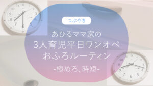 - あひるママ家の3人育児平日ワンオペおふろルーティン -極めろ、時短-※本記事はアフィリエイトリンクを含みます 平日の夜、ママのワンオペ、3人育児。保育園児の双子男子と小1の女子は、少し眠そうな様子で夕食をやっと食べ終わったと …