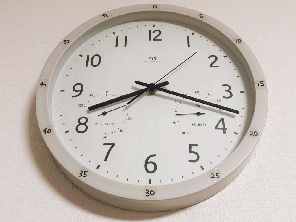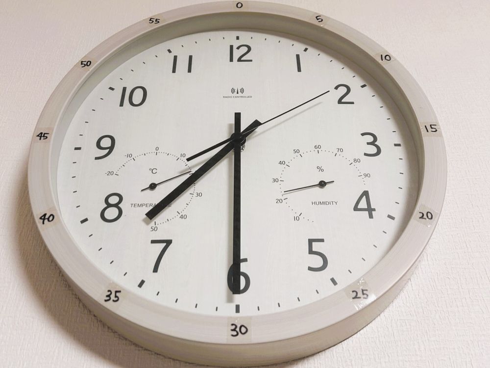 生活感あふれるリビング時計。分を手書き。